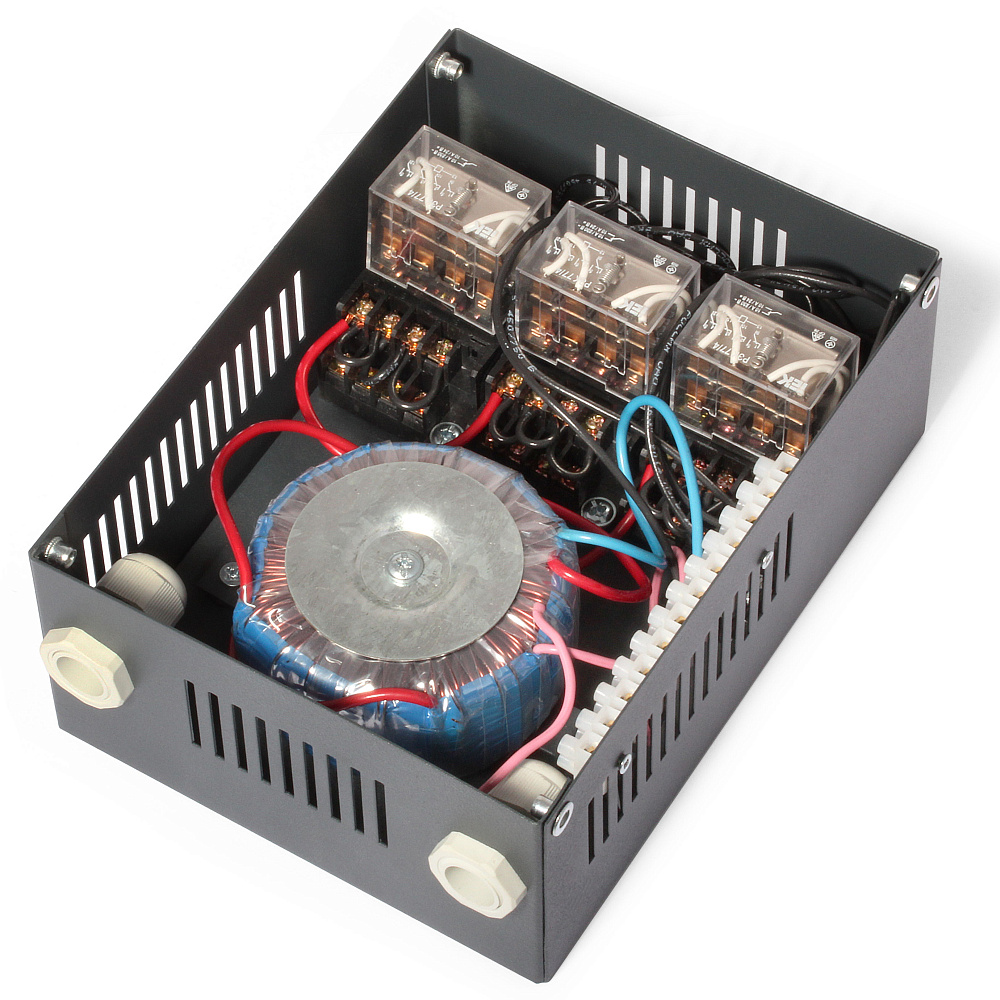 Блок BRT-90 рассчитан на подключение не более 6 вентиляторов с крыльчаткой диаметром 45 мм или до 7 вентиляторов с крыльчаткой диаметром 30 мм и служит для подключения вентиляторов, работающих при напряжении 12В, с термостатами Techno КТ 200, Techno КТ 300, Siemens RAB11.1 и RDF310.2 и их аналогами.