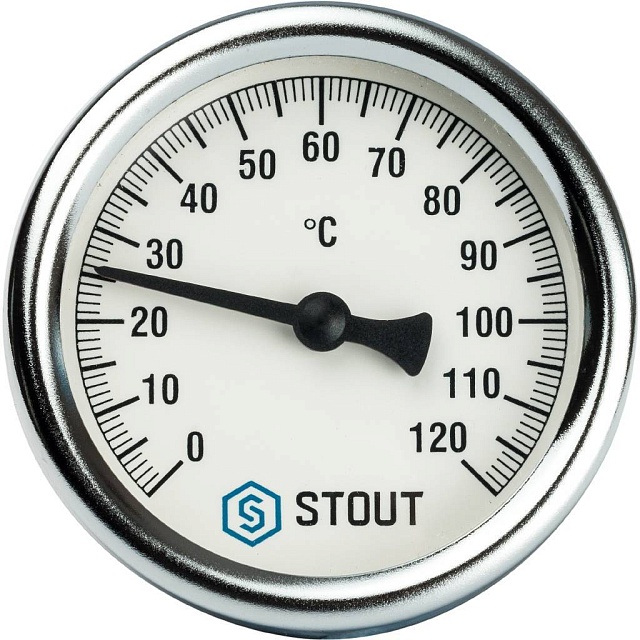 Стрелочные показывающие термометры с биметаллическим термочувствительным датчиком, погружные и накладные STOUT - предназначены для мониторинга температуры различных сред в системах отопления, горячего и холодного водоснабжения, тепло- и холодоснабжения вентиляционных установок.