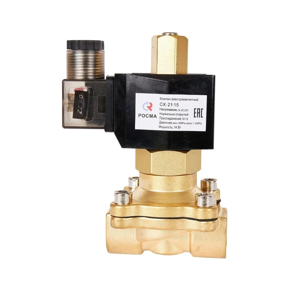Клапан электромагнитный (соленоидный) Росма НО, 220В, 1/2, латунь