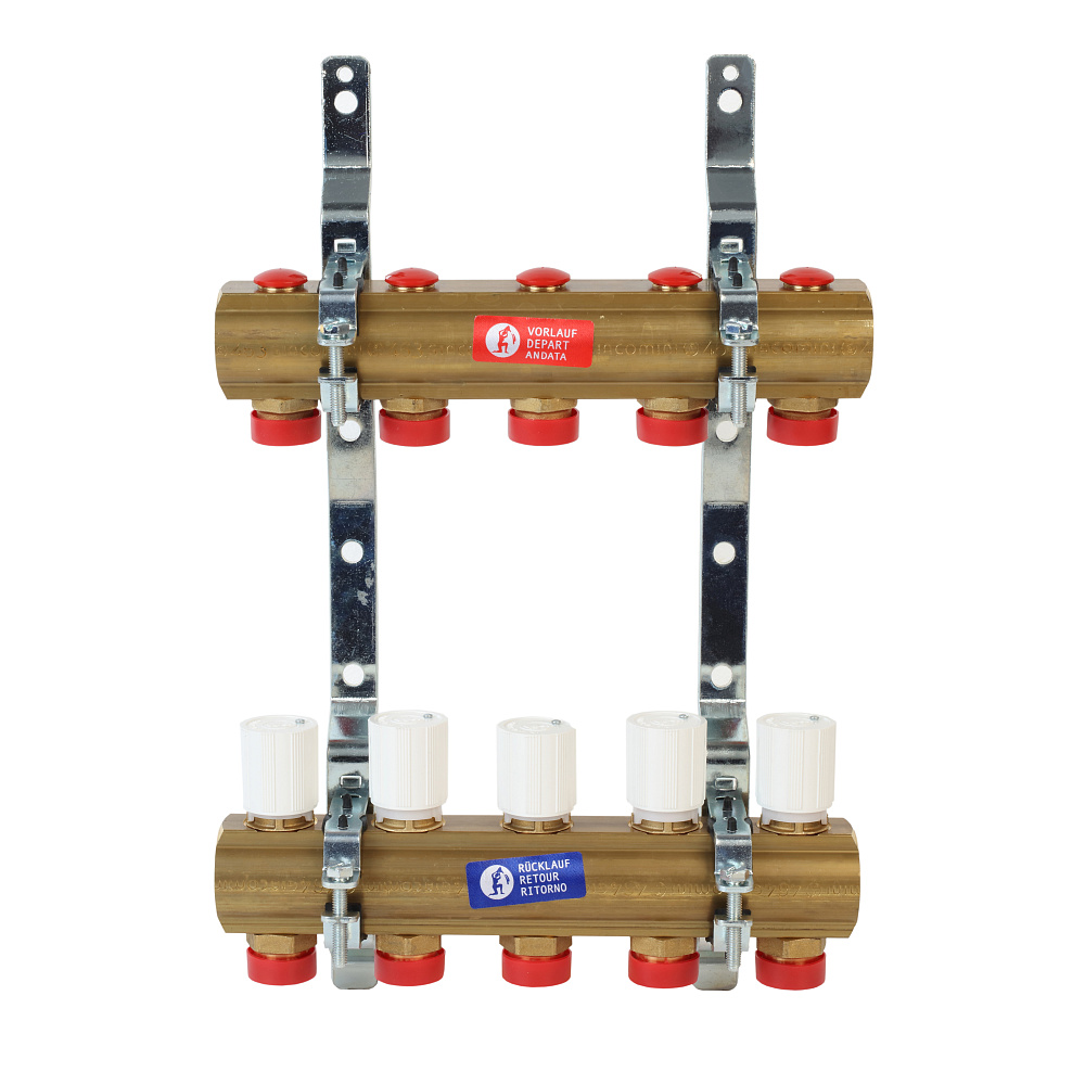 Коллекторная группа Giacomini для систем отопления, с балансировочными клапанами, R553D, латунь, 1x3/4E, 6 отводов, кронш.R588Z