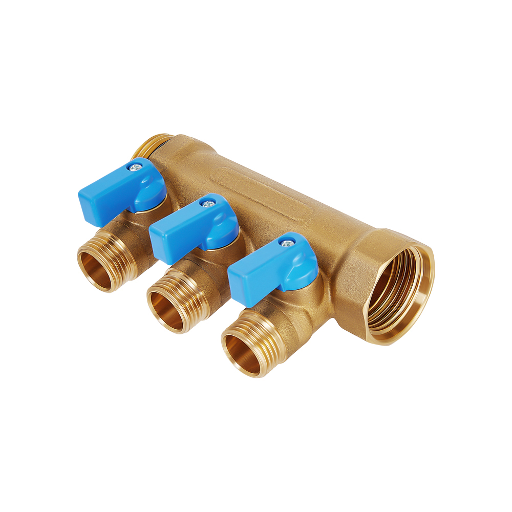 Коллектор HOOBS с шаровыми кранами, латунь, 1 х2х1/2 EK, синяя ручка