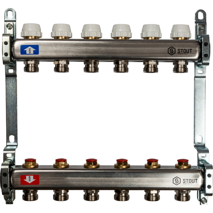 Коллектор Stout из нержавеющей стал с запорными клапанами 1/3/4x6, SMS 0922 000006