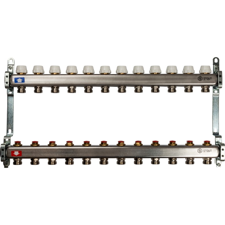 Коллектор Stout из нержавеющей стал с запорными клапанами 1/3/4x12, SMS 0922 000012