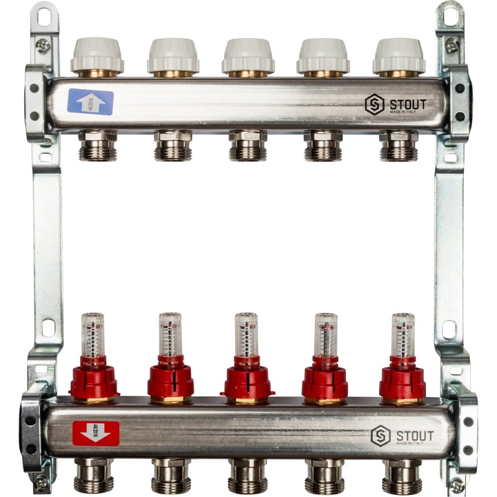 Коллектор Stout из нержавеющей стали с расходомерами 1/3/4x5, SMS 0917 000005