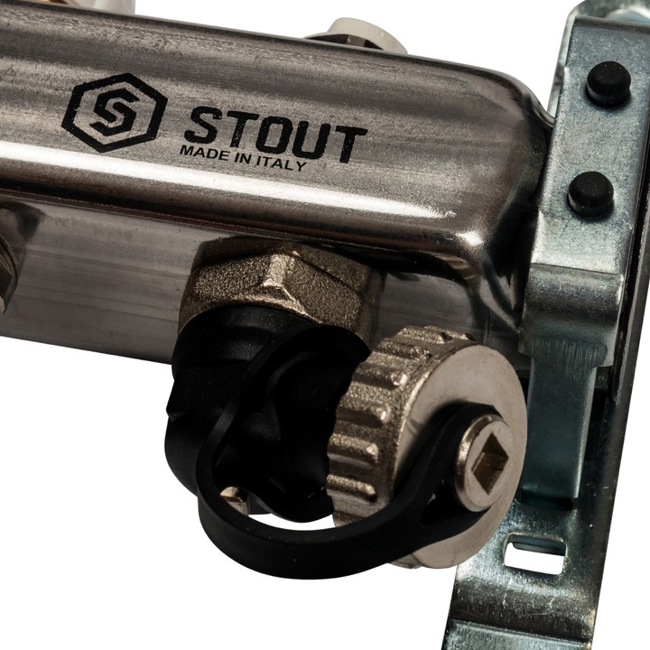 Коллектор Stout из нержавеющей стали с расходомерами, с клапаном вып. воздуха и сливом 1/3/4x4, SMS-0927-000004