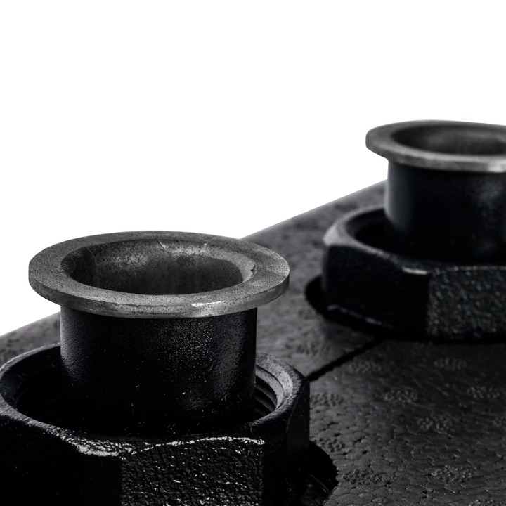 Распределительный коллектор STOUT представляют собой одну стальную коробчатую трубу прямоугольного сечения вместо обычно двух, к которой снизу и сверху соосно приварены парные патрубки (входные и выходные). Внутри трубы выполнены фигурные перегородки для разграничения прямого и обратного потоков теплоносителя и организации распределения его между всеми выходными патрубкам коллектора. Зигзагообразная форма перегородок позволила расположить патрубки вдоль одной оси коллектора.