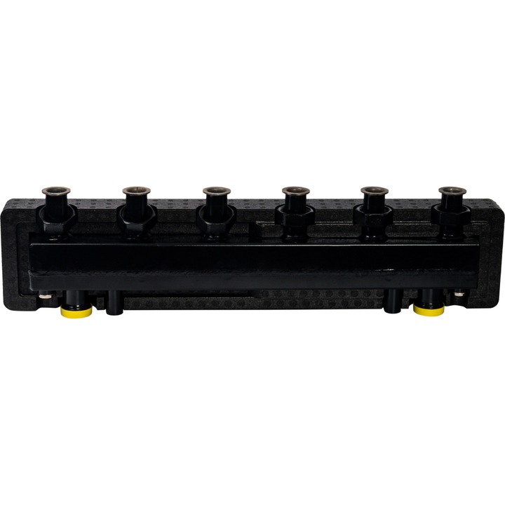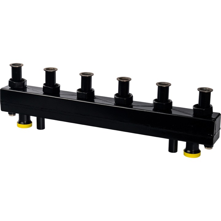 Верхние патрубки коллектора оснащены накидными гайками для обеспечения быстрого соединения, как правило, с насосными узлами гидромодуля, а нижние – имеют наружную резьбу.