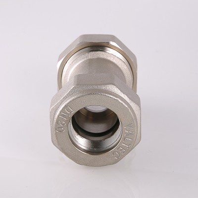 Корпус и накидная гайка фитингов изготовлены из сантехнической латуни, никелированы, разрезное обжимное кольцо («сухарь») – из закаленной нержавеющей стали, которая намного превосходит по твердости материал соединяемой трубы. Смыкаясь при завинчивании накидной гайки, кольцо врезается в стенку трубы, надежно фиксируя соединитель. Через латунную шайбу «сухарь» воздействует на толстое уплотнительное кольцо из EPDM Sh70, плотно обжимающее трубу и герметизирующее соединение.