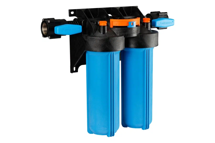 Корпус для картриджного фильтра предназначен для размещения в нём картриджей или фильтрующей засыпки для дальнейшей очистки холодной воды в бытовых условиях. Изготавливается из армлена, прочного материала устойчивого к циклическим нагрузкам и не пропускающего ультрафиолетовые лучи сквозь корпус. Типоразмер колб - Slim Line 10”. Использование двухступенчатых корпусов фильтра рекомендуется в случаях, где необходимы картриджи разных фильтрующих свойств. Это существенно облегчит монтаж и последующее обслуживание системы по сравнению с одинарными корпусами. Поворот коллектора на 180° позволяет установить корпус фильтра в магистраль, с направлением движения воды, как слева направо, так и справа налево. Компактное расположение парных корпусов. Магистральную трубу можно разместить вплотную к стене.