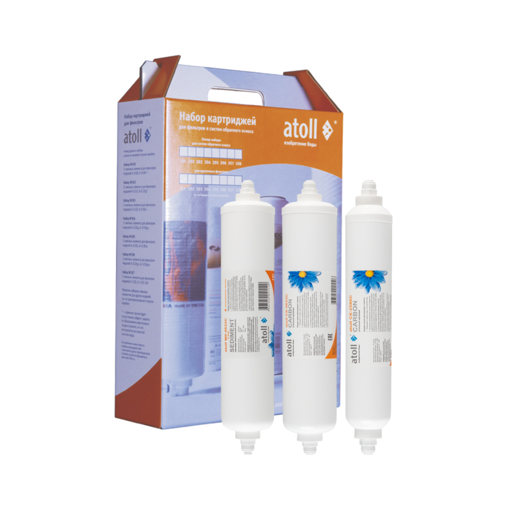 Набор картриджей Atoll №206 STDA предназначен для замены использованных элементов в системах обратного осмоса. Содержит предфильтр и постфильтры.
