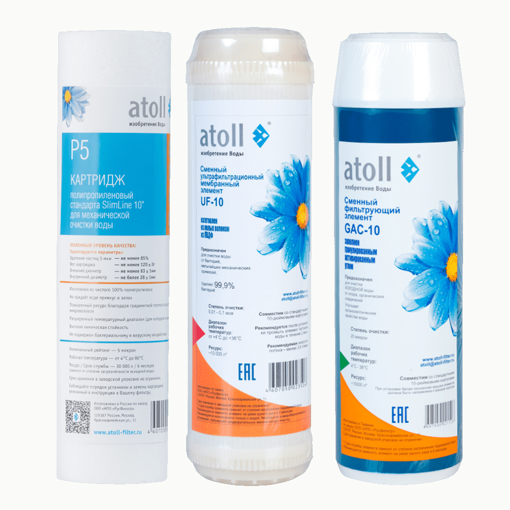 Внимание! Применение в фильтрах atoll картриджей сторонних производителей не обеспечивает характеристик, заявленных в паспорте на фильтр. Использование несертифицированных картриджей или картриджей неустановленных производителей может нанести вред Вашему здоровью.