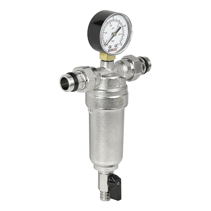 Фильтр промывной Valfex 1/2 с манометром, никелированный