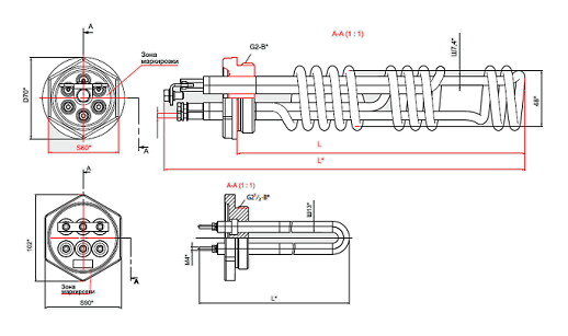 ТЭН ZOTA ТЭНБ трубка из нержавеющей стали (д=7,4 мм) резьбовое соединение 1 1/2 c защитным полимерным колпаком 3,00 кВт Р 1 1/2