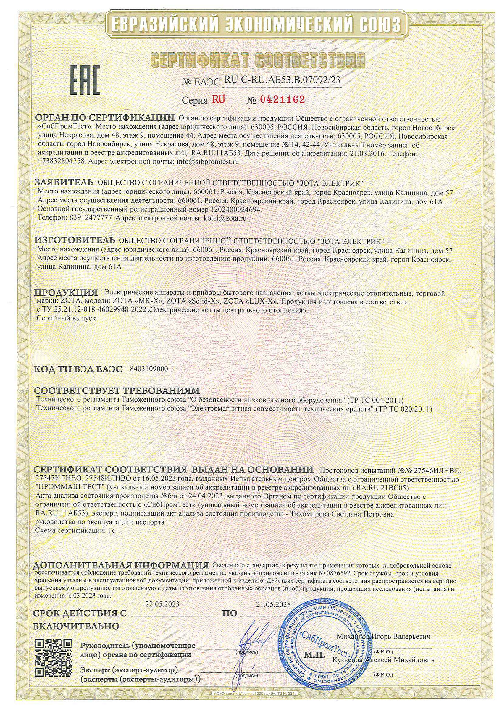 Котел электрический отопительный ZOTA LUX-X, предназначен для обогрева жилых и производственных помещений.