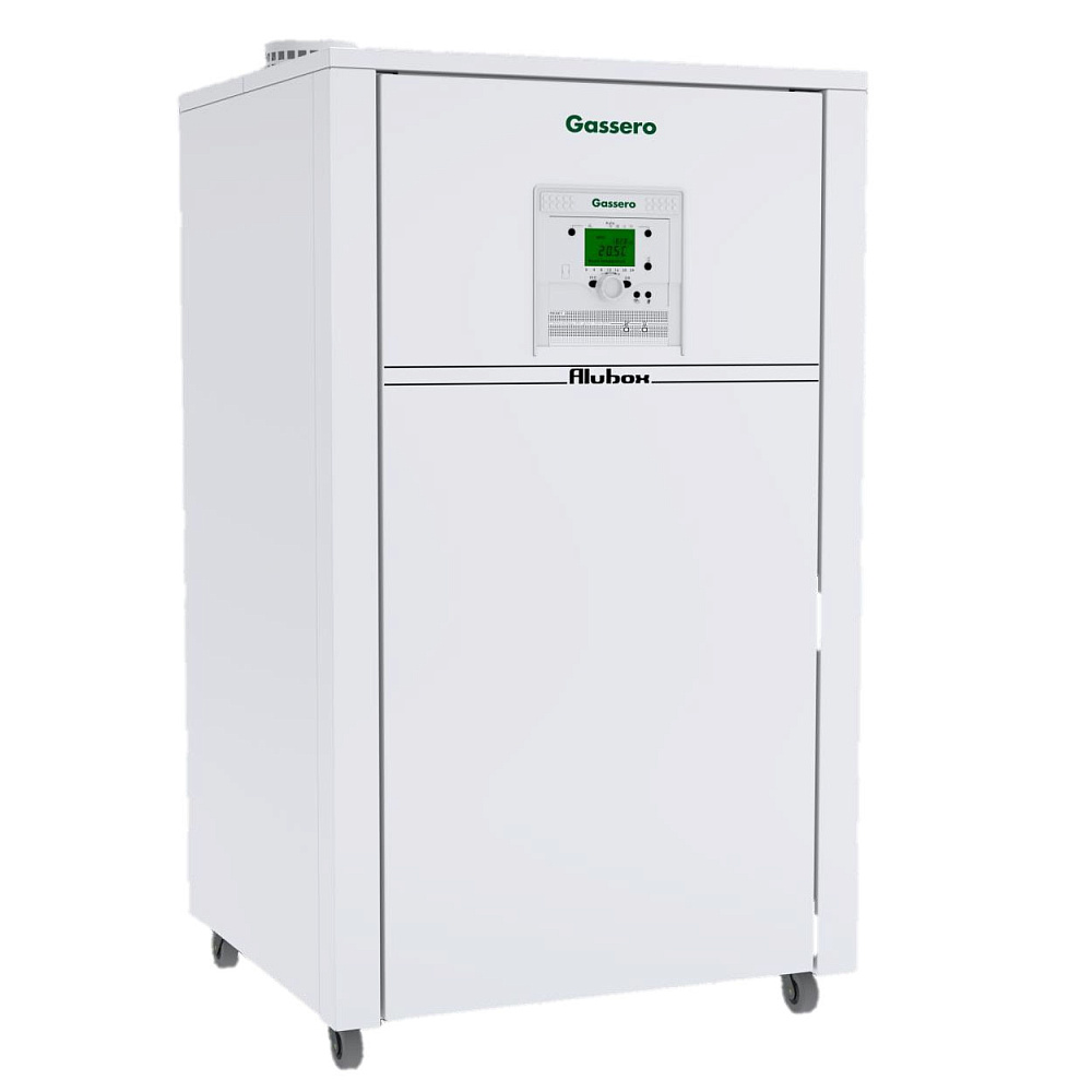 ALUBOX – это напольный газовый конденсационный котел. Премиксная газовая горелка и теплообменник из алюминиево-кремниевого сплава гарантируют высокую энергетическую эффективность и длительный срок службы. Напольные конденсационные котлы Gassero ALUBOX с горелками предварительного смешивания предназначены только для целей отопления одно- и многоквартирных домов, зданий общественного, административного и промышленного назначения. В целях нагрева санитарной воды ГВС котел может быть подключен к бойлеру косвенного нагрева. Котел может использоваться как в составе однокотловой, так и в многокотловой установке. Необходимая тепловая мощность установки может быть обеспечена за счет установки нескольких котлов в каскад. В каскадных системах могут работать максимум 16 котлов.