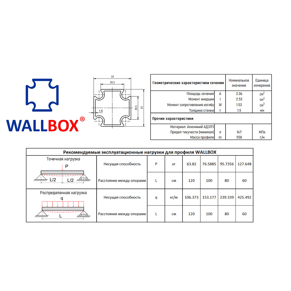 Увеличенная до 1.5мм толщина стенки позволяет обеспечить несущую способность профиля на растяжение, сжатие и изгиб аналогичную европейским стальным аналогам. В то же время, использование алюминия позволяет добиться больших нагрузок на срез (соскальзывание) соединительных элементов – угловых соединений и установочных элементов.