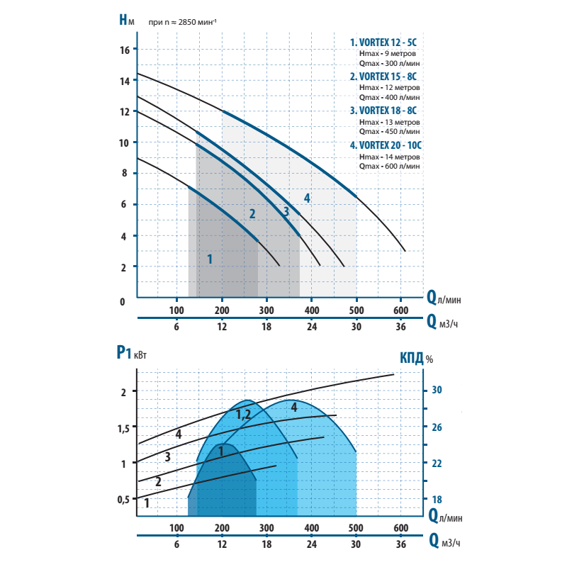 • Вязкость и плотность перекачиваемой жидкости - не выше 10% от значений для чистой воды.