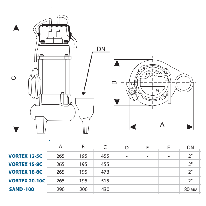 Погружной дренажный электронасоc модели VORTEX 15-8C относится к серии профессионального оборудования. Применяется для перекачивания грязной воды с твёрдыми включениями.