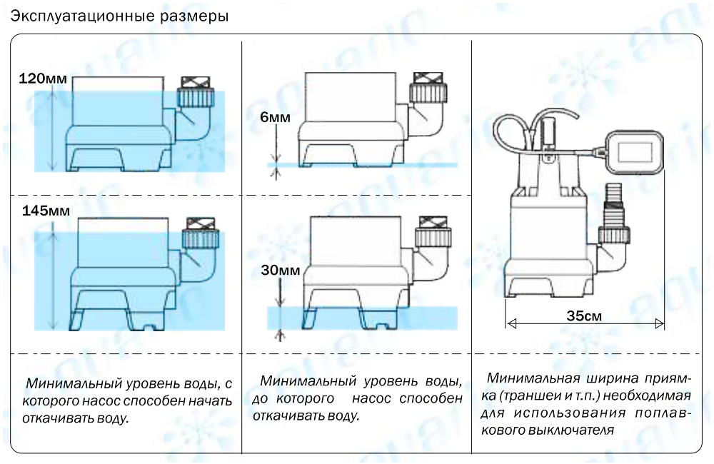 • Максимальная глубина погружения насоса под зеркало воды 5 м