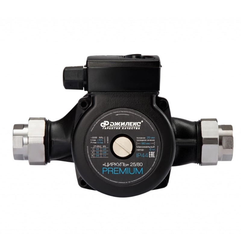 Циркуляционный насос Джилекс Циркуль Премиум 25/80 предназначен для циркуляции воды или теплоносителя в системах отопления с присоединительным размером гайки 1 дюйм (25 мм) и максимальным напором 8 метров (80 дм).