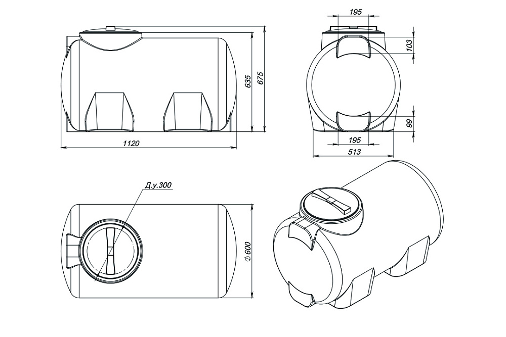 Горизонтальная емкость для воды, объемом 300 литров предназначена для длительного хранения и транспортировки воды, в том числе питьевой. Материал емкости устойчив ко многим агрессивным средам и ультрафиолету, и не изменяет вкусовых свойств хранящихся жидкостей. Емкость Н 300 имеет целостный корпус, без швов.