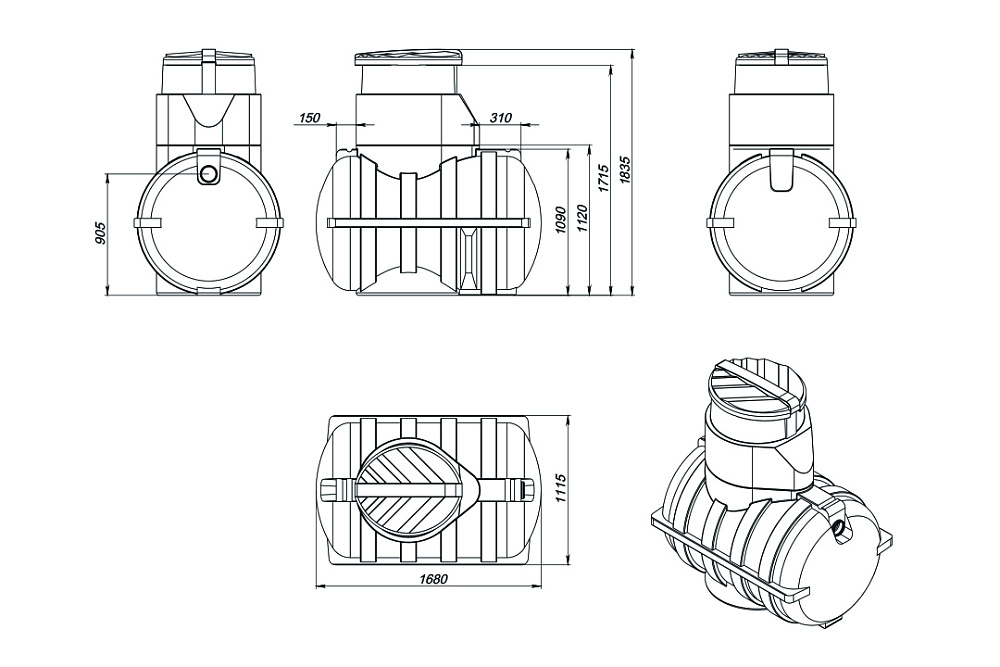 Емкость изготовлена на базе корпуса септика Rostok Дачный. Горловина емкостей U 1250 Oil оборудована пластиковой вставкой для врезки дополнительного оборудования.