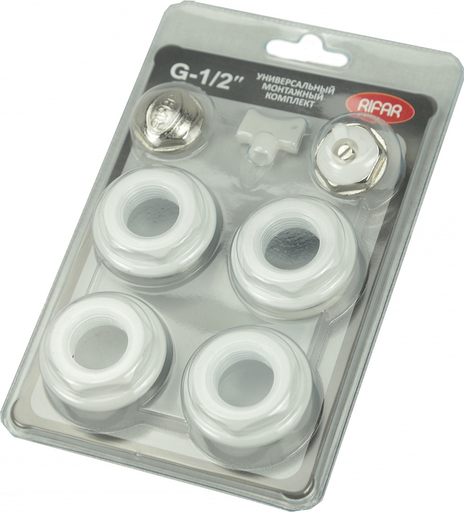 Комплект монтажный Рифар предназначен для монтажа радиаторов с диаметром трубы 1/2". Комплектующие незаменимы при организации и запуске отопительной системы в жилом и нежилом помещении. Переходники из прочного материала не подвержены коррозии, гарантируют прочность и герметичность конструкции.