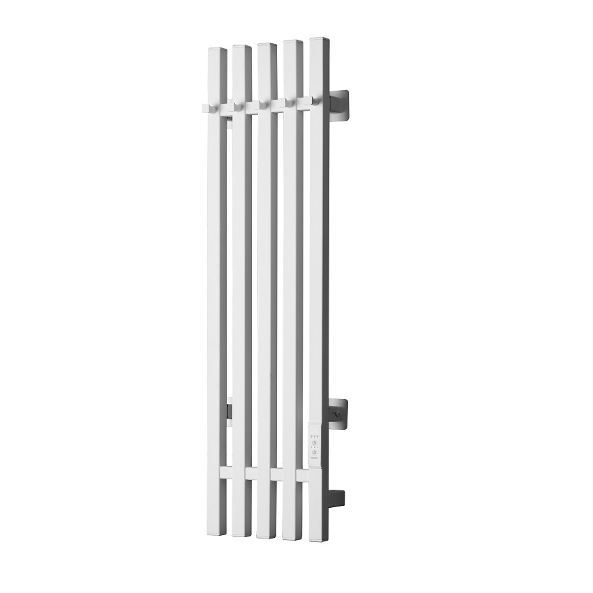 Экономичность: Полотенцесушитель снабжен панелью управления. Кнопка включения/выключения и таймер на 2 / 4 / 6 часов , который позволяет включать изделие на ограниченное время. Эта функция дает возможность экономить электричество.