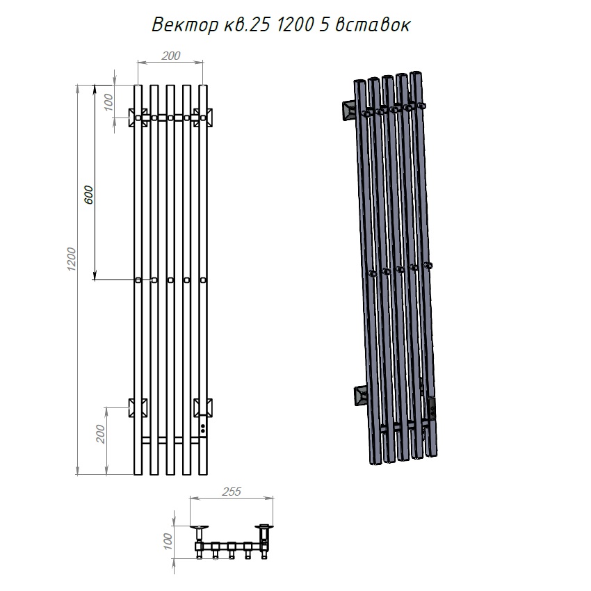 Скрытое подключение: Благодаря приваренной в нижней части вертикальных труб распаечной коробке, в которых соединяется электропроводка, возможно скрытое подключение к электричеству справа.