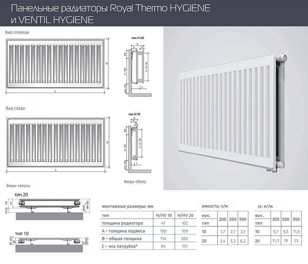 • Тип панельного радиатора