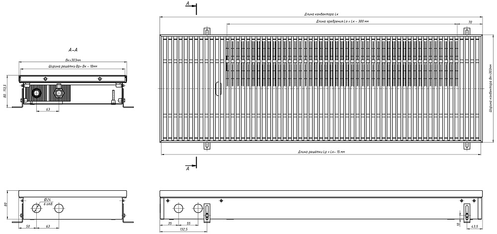Внутрипольный конвектор с естественной конвекцией Eva K.80.303.900