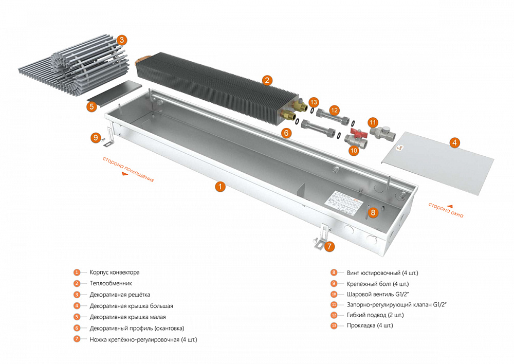 Позволяет преградить поток холодного воздуха от застеклённых фасадов или окон. Данный тип конвектора служит для отопления сухих помещений, а также помещений с повышенной влажностью.