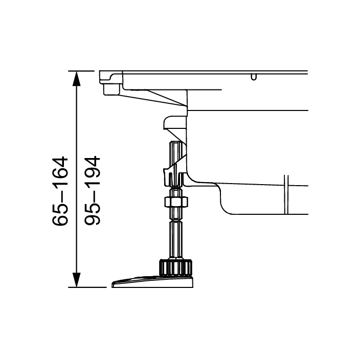 Монтажные опоры для сифона TECEdrainprofile, для быстрого выравнивания по высоте и фиксации положения при установке на уровне с необработанными поверхностями. Диапазон регулировки сифона 95–194 мм (расстояние от нижнего края опор до верхнего края сифона или верхнего края бесшовного пола).