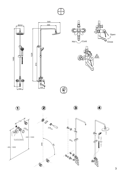 • Материал верхнего душа ABS-пластик