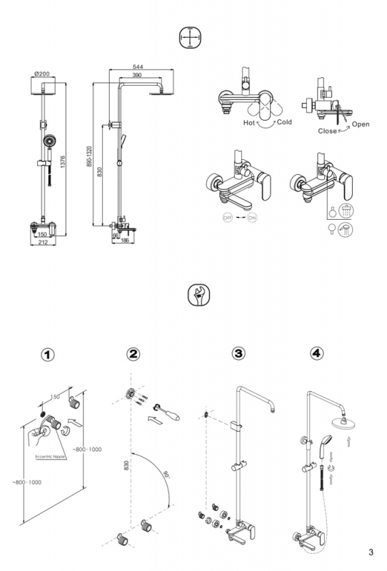 • Размер верхнего душа 200 мм