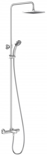 Простые гигиенические процедуры станут еще приятнее с душем из коллекции JULY марки Jacob Delafon. Душевая стойка французского производства изготовлена из хромированной латуни и имеет антиизвестковое покрытие, которое значительно облегчает уход за глянцевой поверхностью. Модель оснащена квадратным верхним душем с эффектом тропического ливня, ручной лейкой с 1 режимом и высокой душевой стойкой, позволяющей поднимать лейку на желаемую высоту. Включение/отключение воды осуществляется с помощью термостатного смесителя со скрытым переключателем. Термостат автоматически прекращает подачу воды, если ее температура превышает 50 °С. Душевая стойка совместима со всеми типами водонагревателей (минимальная мощность для проточных и проточно-накопительных типов - 18 кВт)