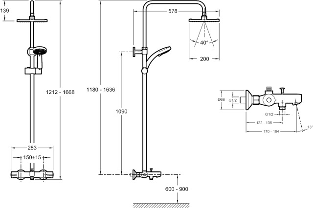• Форма верхнего душа Квадратная