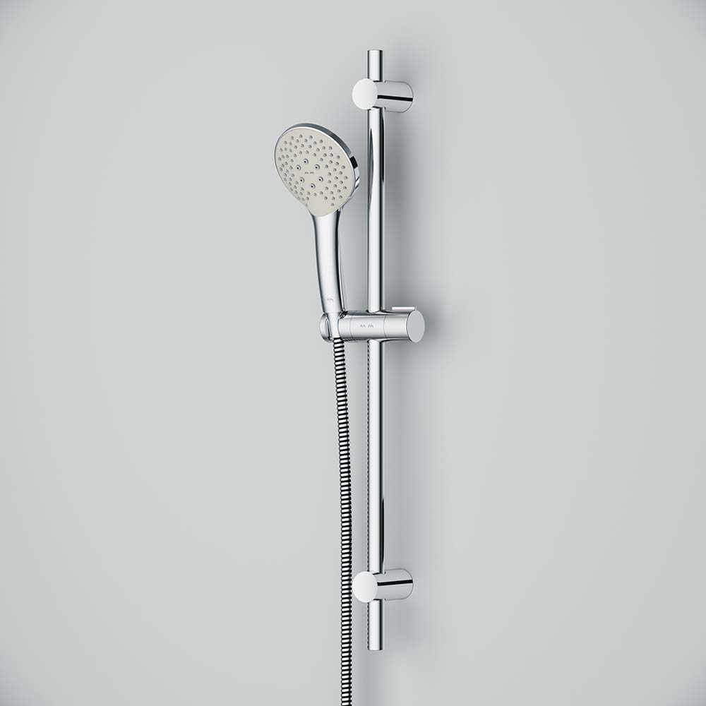 Продуманные детали для удобства использования: шарнирное соединение защищает душевой шланг от перекручивания, регулируемый в трех плоскостях держатель ручного душа, функция Rub&Clean для легкой очистки душевых форсунок.
