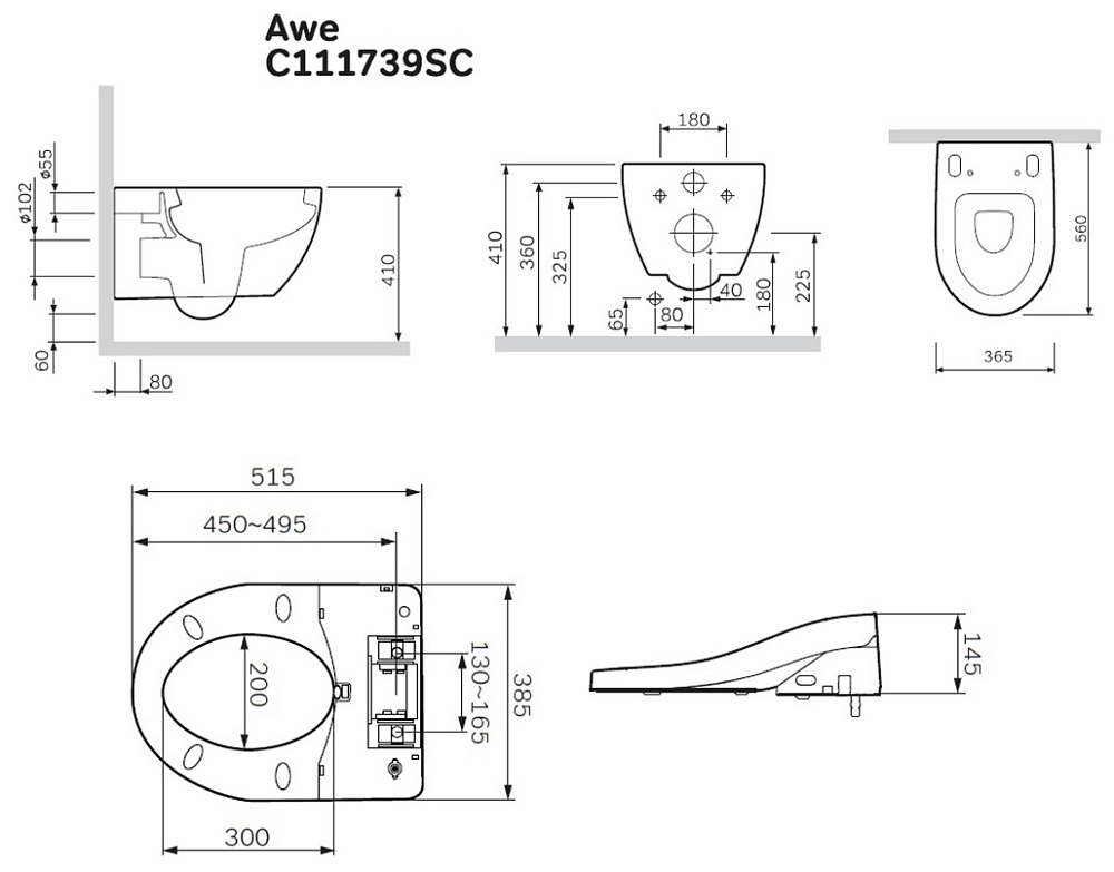Унитаз подвесной AM.PM Awe C111739SC с электронной крышкой-биде Clean Care