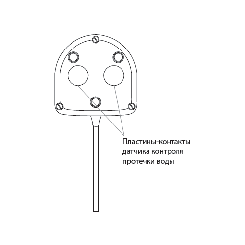 Датчик контроля протечки воды предназначен для выработки сигнала при попадании на него воды. Датчик подключен к безопасному источнику питания и не представляет опасности при прикосновении к пластинам-контактам.