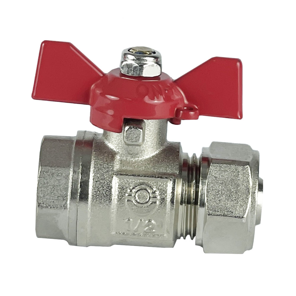 Шаровый кран Valfex для труб PE-RT/Al/PE-RT, обжимной с переходом на ВР, ручка-бабочка, 16х1/2 дюйма