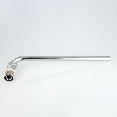 Угловой пресс-фитинг с хромированной латунной трубкой (наружный диаметр – 15, толщина стенки – 1 мм) для подключения отопительного прибора к разводке из металлополимерных труб.
