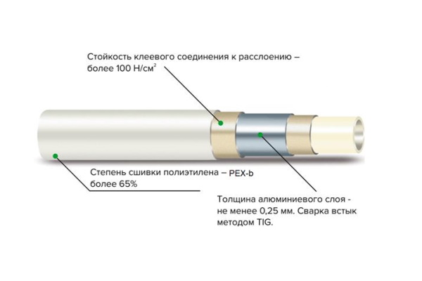 Труба изготовлена в соответствии ГОСТ Р 52134-2003 «Трубы напорные из термопластов и соединительные детали к ним для систем водоснабжения и отопления. Характеристики трубопроводов соответствуют ГОСТ Р 53630-2009 «Трубы напорные многослойные для систем водоснабжения и отопления».