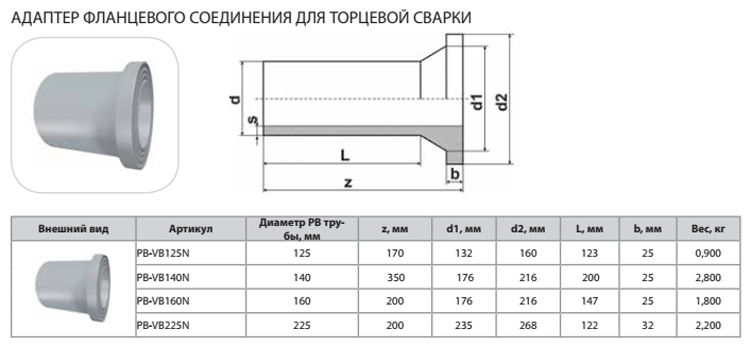 Адаптер фланцевого соединения Thermaflex для торцевой сварки PB-VB160N