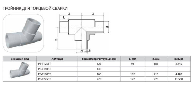 Тройник Thermaflex для торцевой сварки PB-T140ST