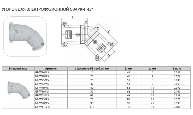 Уголок Thermaflex 45гр. для электрофузионной сварки GF-W25/45