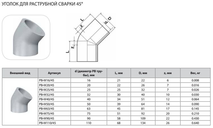 Уголок Thermaflex 45гр. для раструбной сварки PB-W25/45