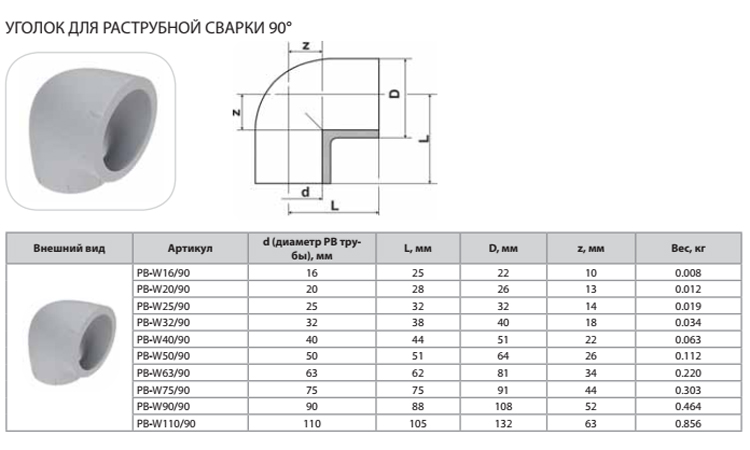 Уголок Thermaflex 90гр. для раструбной сварки PB-W50/90