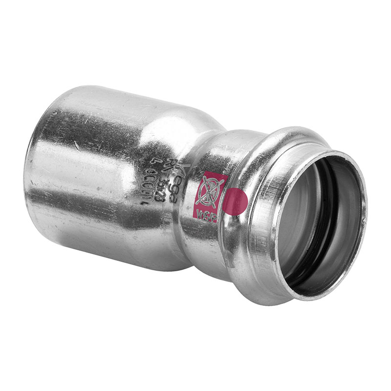 Редукционная вставка Prestabo с контуром безопасности SC?Contur из нелегированной стали с цинковым гальванизированным покрытием. Однораструбный соединительный элемент, пресс-соединение. Комплектуется уплотнительным элементом из EPDM. Подходит для открытого и скрытого монтажа стояков и поэтажной разводки.