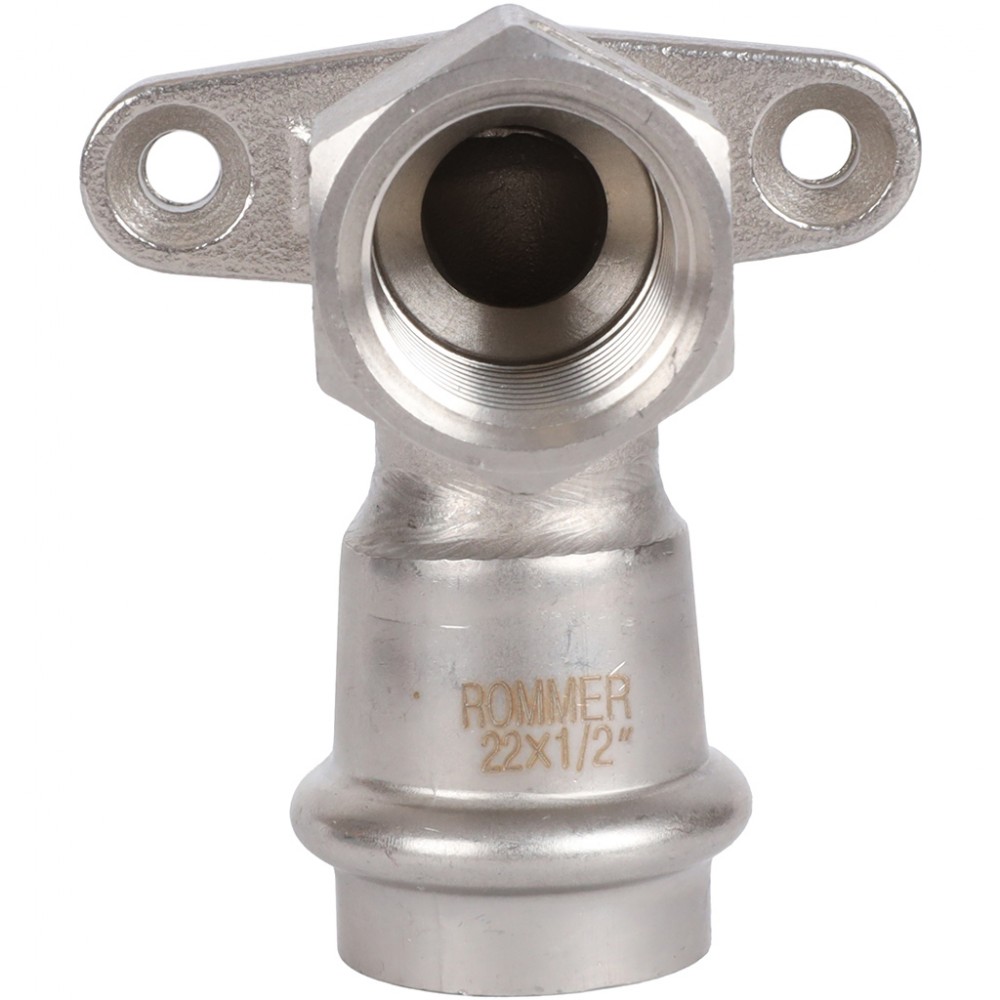Угольник настенный Rommer с креплением 22х1/2 ВПр-ВР, нержавеющая сталь